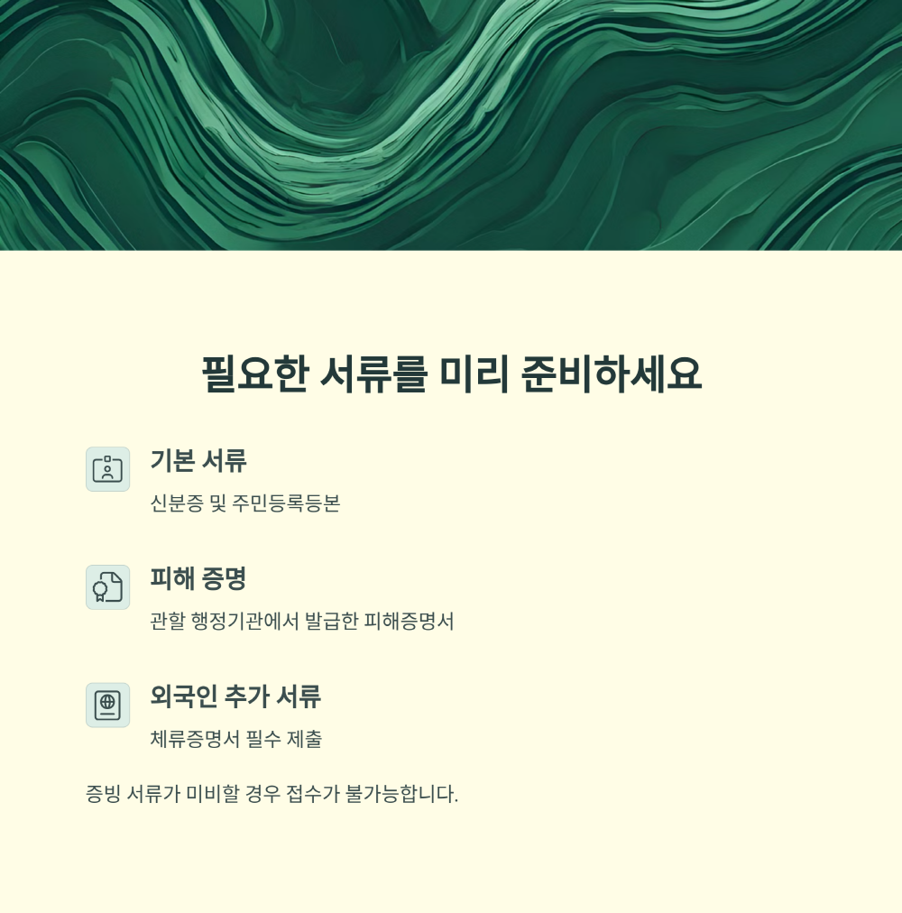 신청 기간을 놓치지 않는 것이 무엇보다 중요합니다. 정해진 기간 내에 신청하지 않을 경우 지원이 제한될 수 있기 때문에, 반드시 기한을 확인하세요. 또한 개인 정보와 피해 내용은 정확하게 기재하고, 증빙 서류(사진, 문서 등)를 철저히 준비해야 합니다.