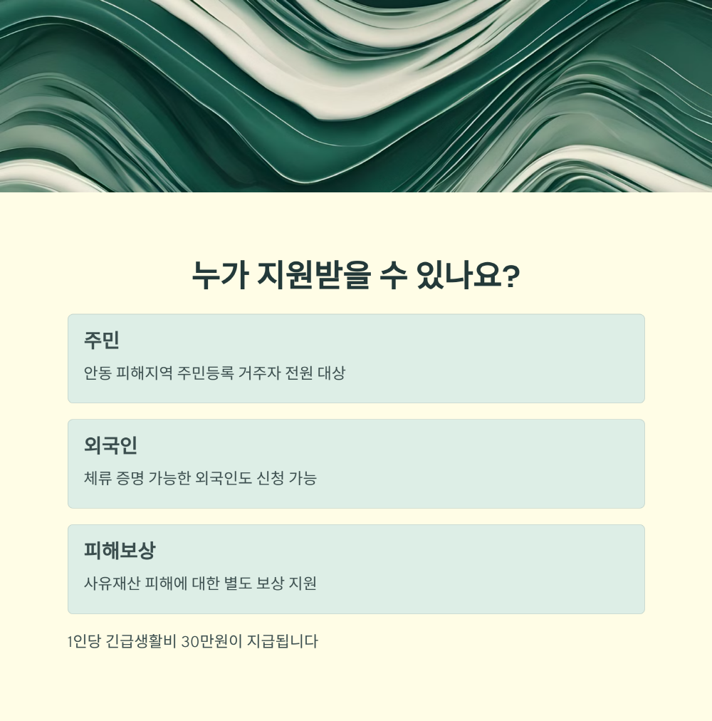 지원 대상: 2025년 3월 28일 기준 안동시 주민등록상 거주자 전원(외국인 포함)
