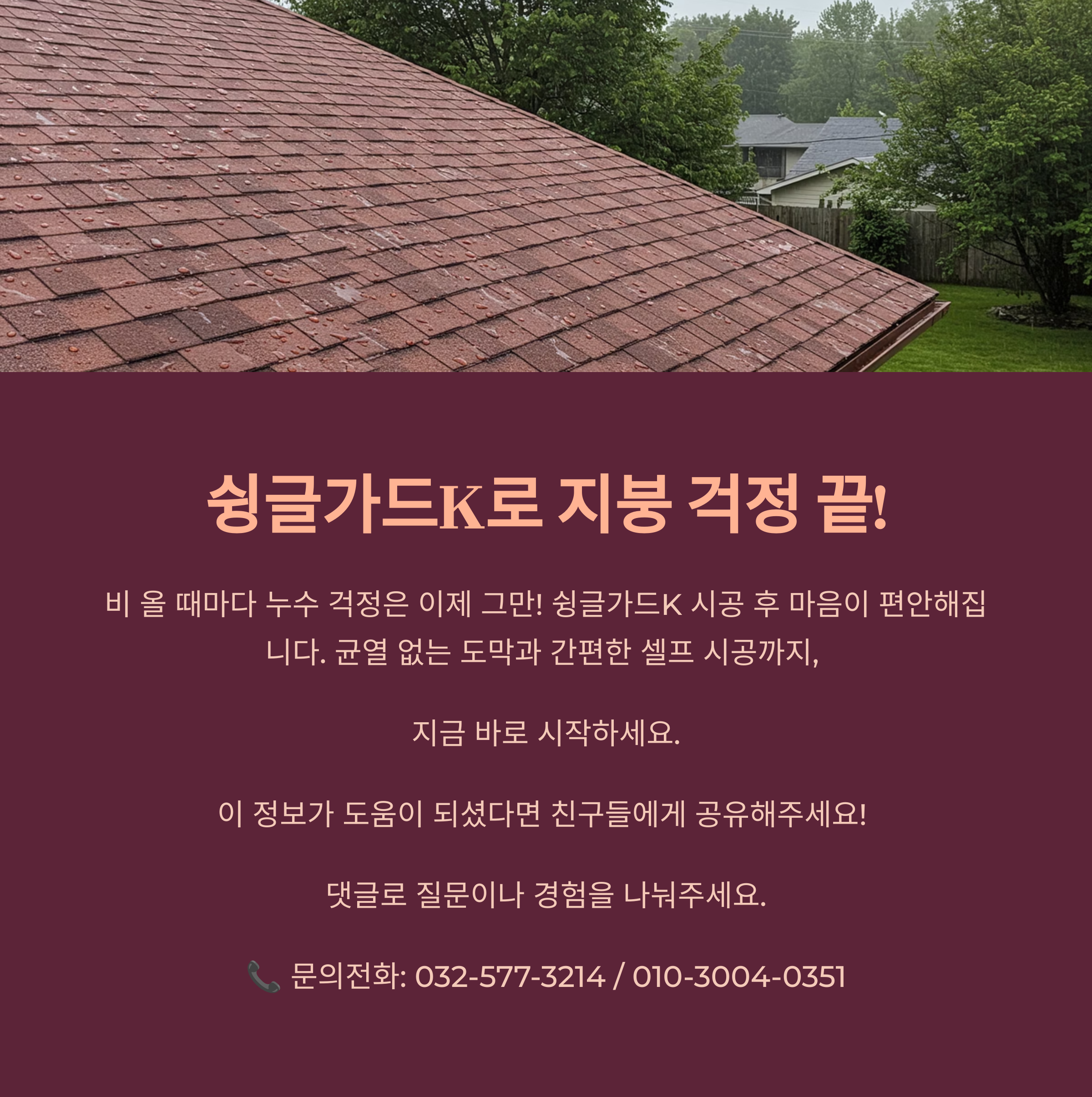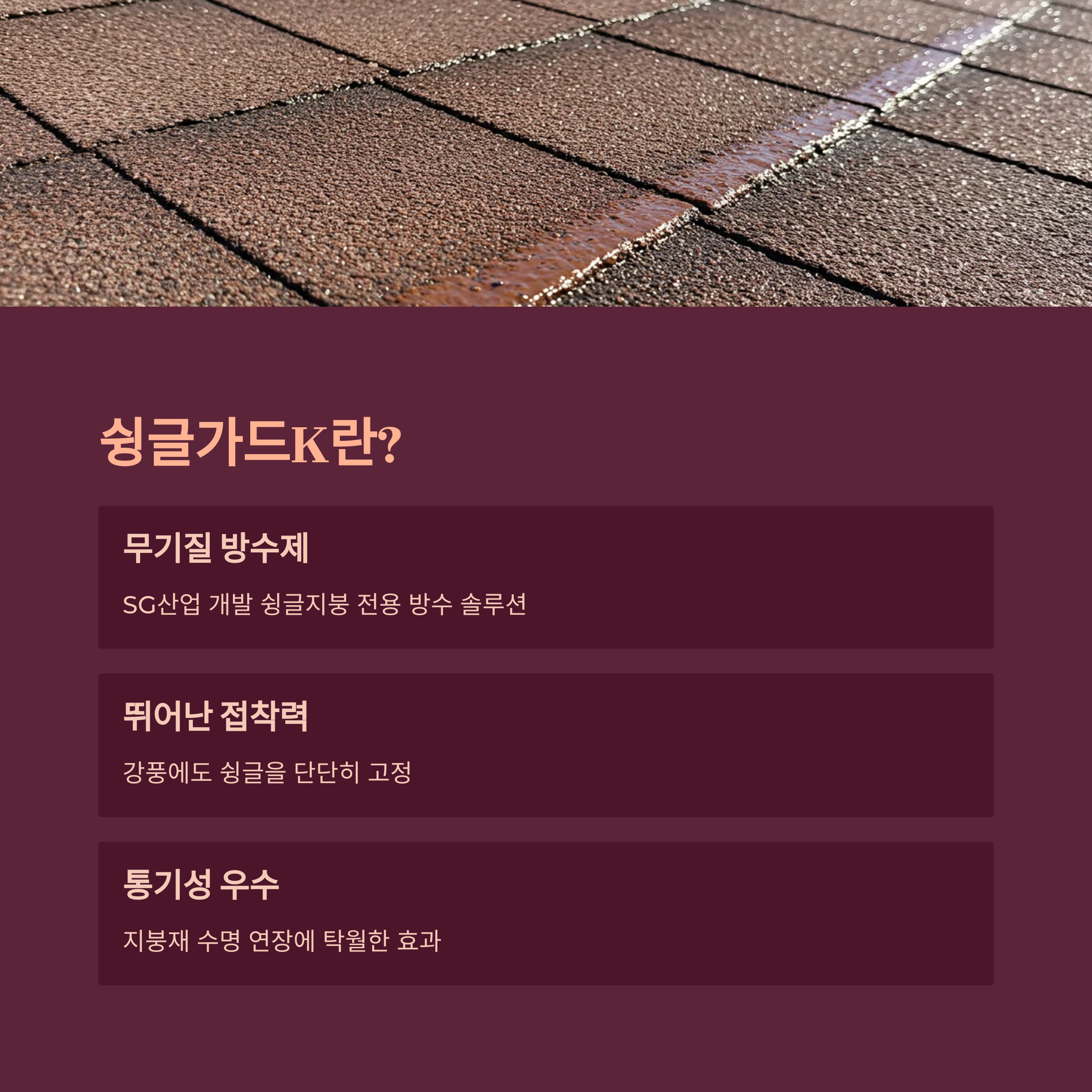 지붕 누수? 슁글방수는 슁글가드K로 확실하게 잡으세요!