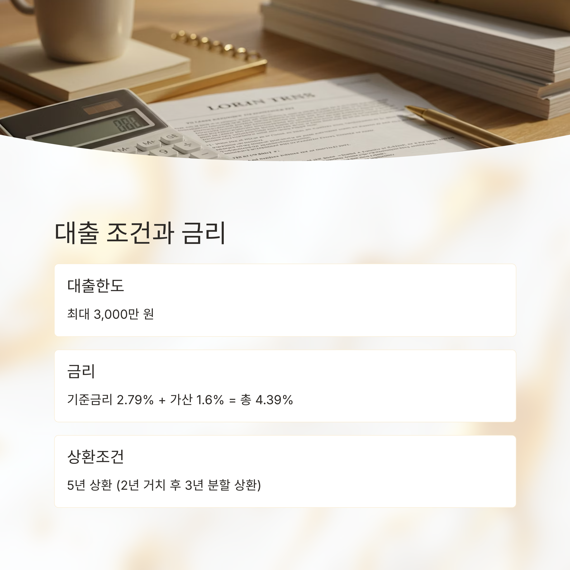 | 상환조건 | 5년 상환 (2년 거치 후 3년 분할 상환) |