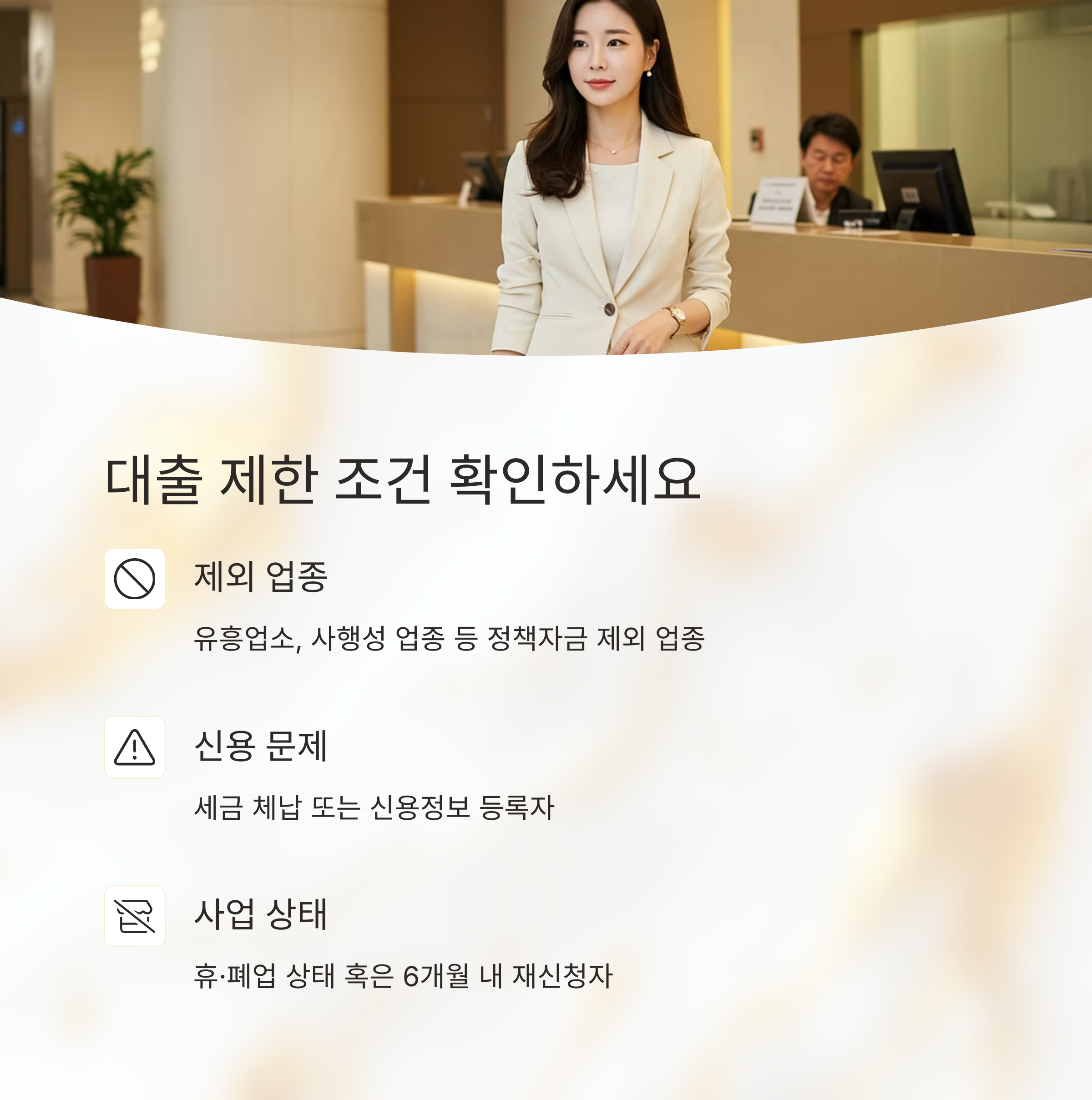 - 대출 제한 업종에 해당하지 않을 것