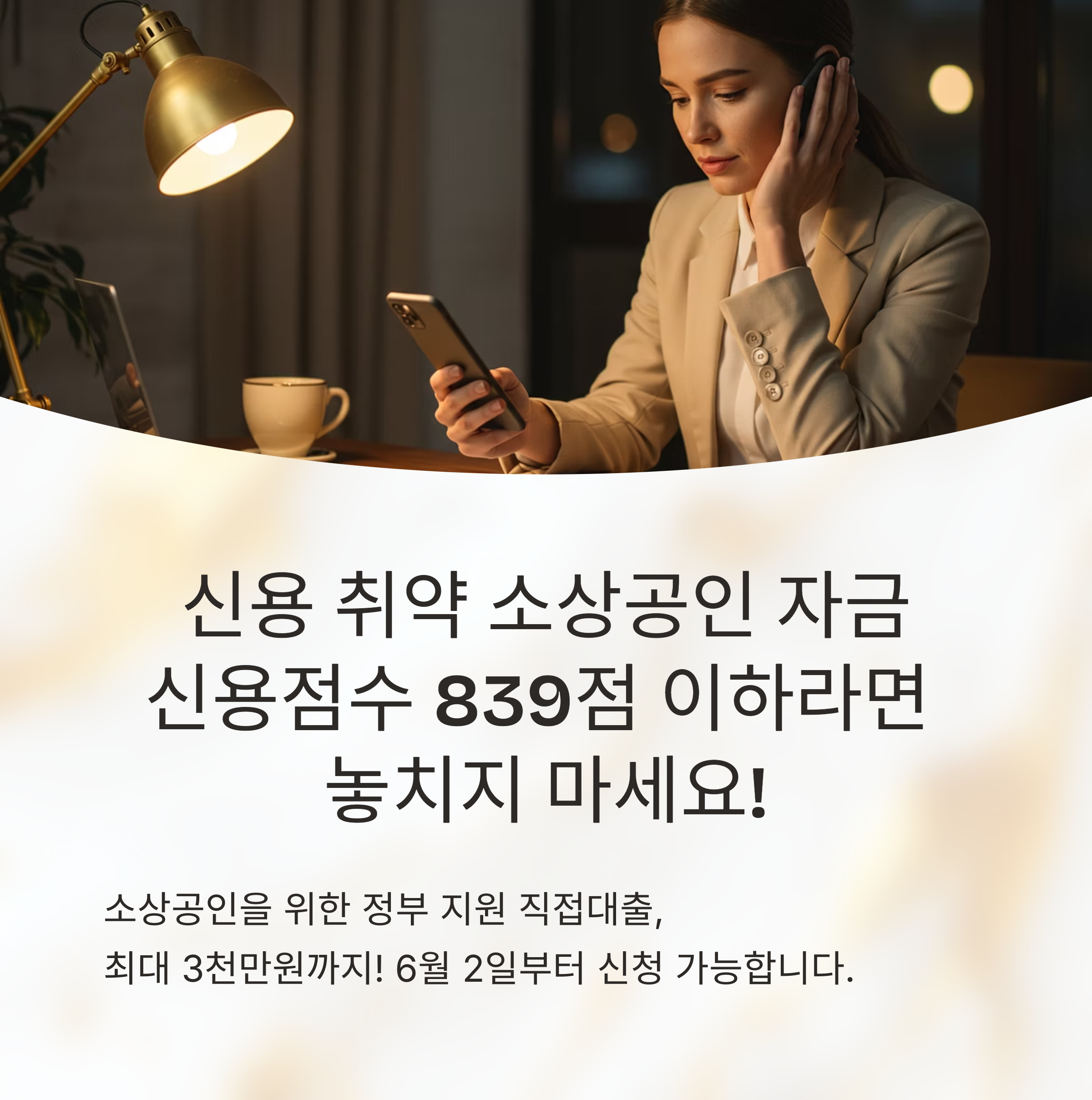 이보다 더 실속 있는 정보는 없습니다. 신용점수 839점 이하라면, 이 기회를 절대 놓치지 마세요!