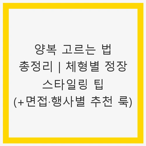 양복 고르는 법 총정리|체형별 정장 스타일링 팁 (+면접·행사별 추천 룩)