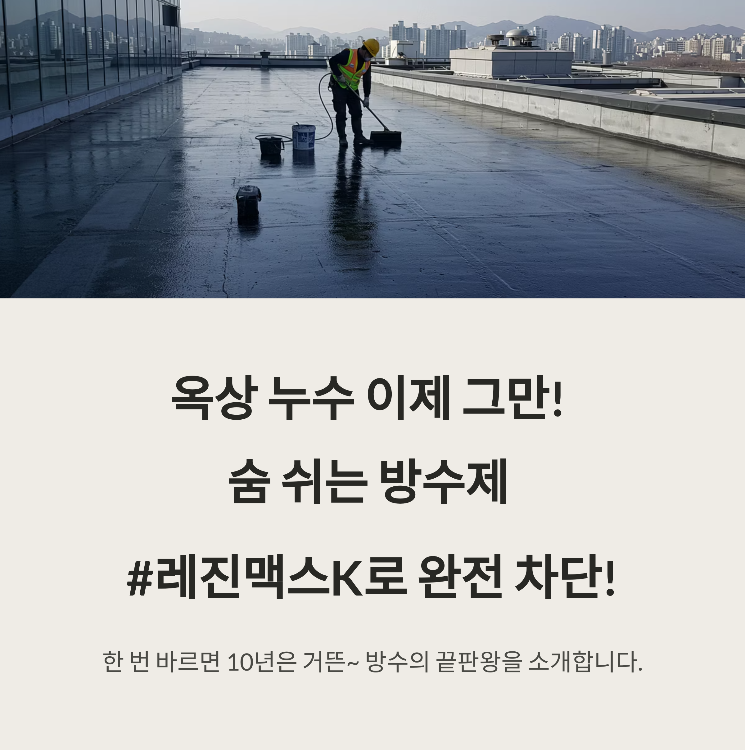 “옥상 누수 이제 그만! 숨 쉬는 방수제 #레진맥스K로 완전 차단! 한 번 바르면 10년은 거뜬~”
