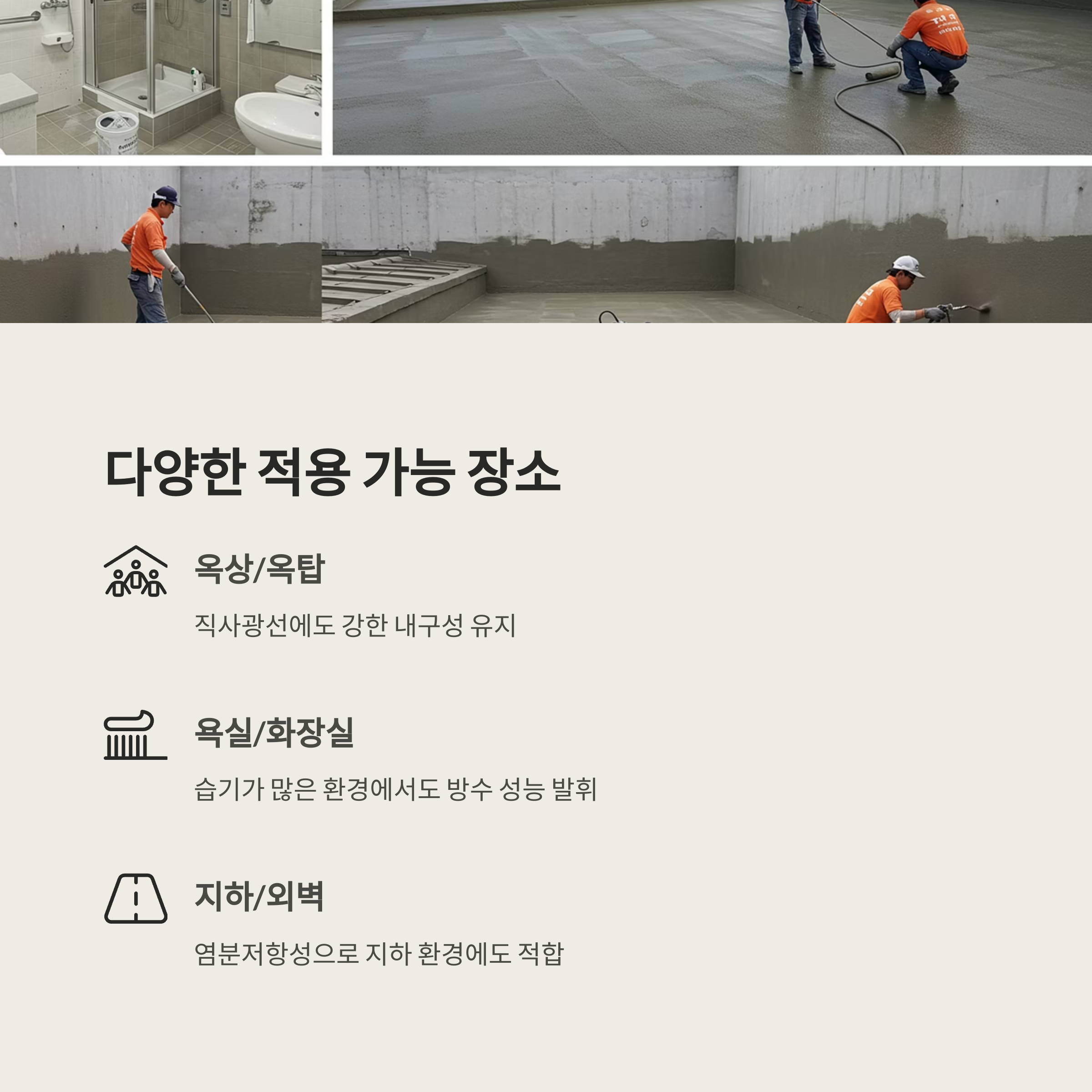 옥상방수는 물론 지하·욕실·베란다까지 한 번에 해결!