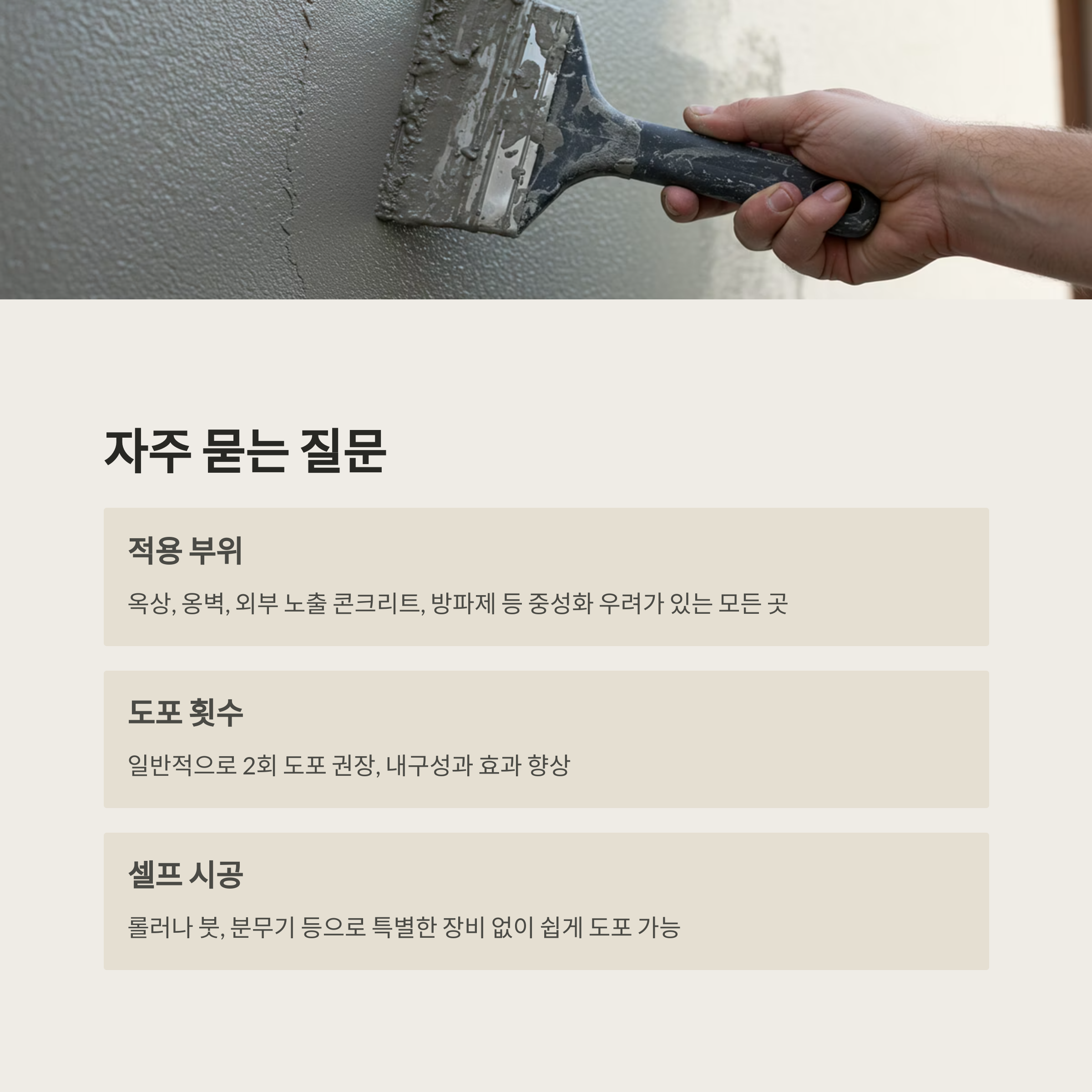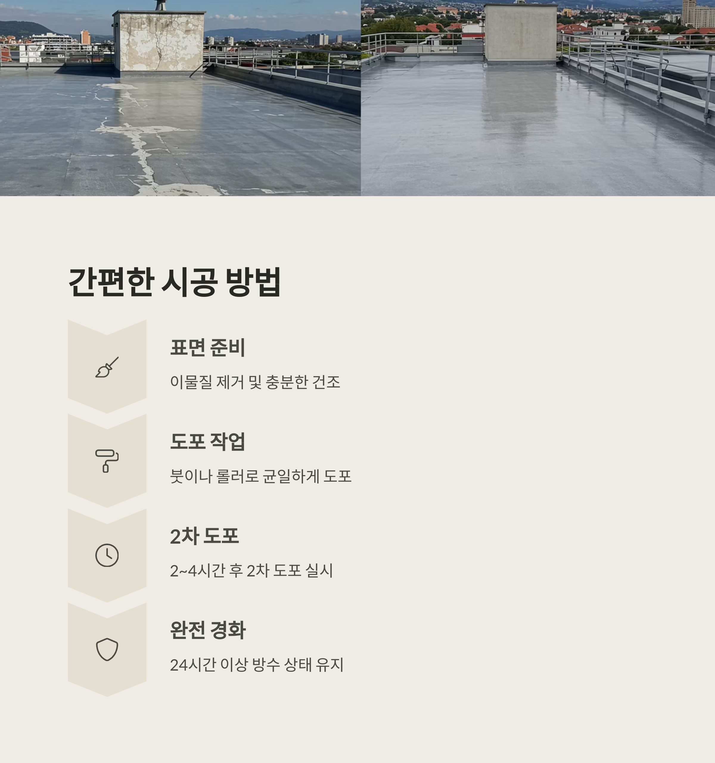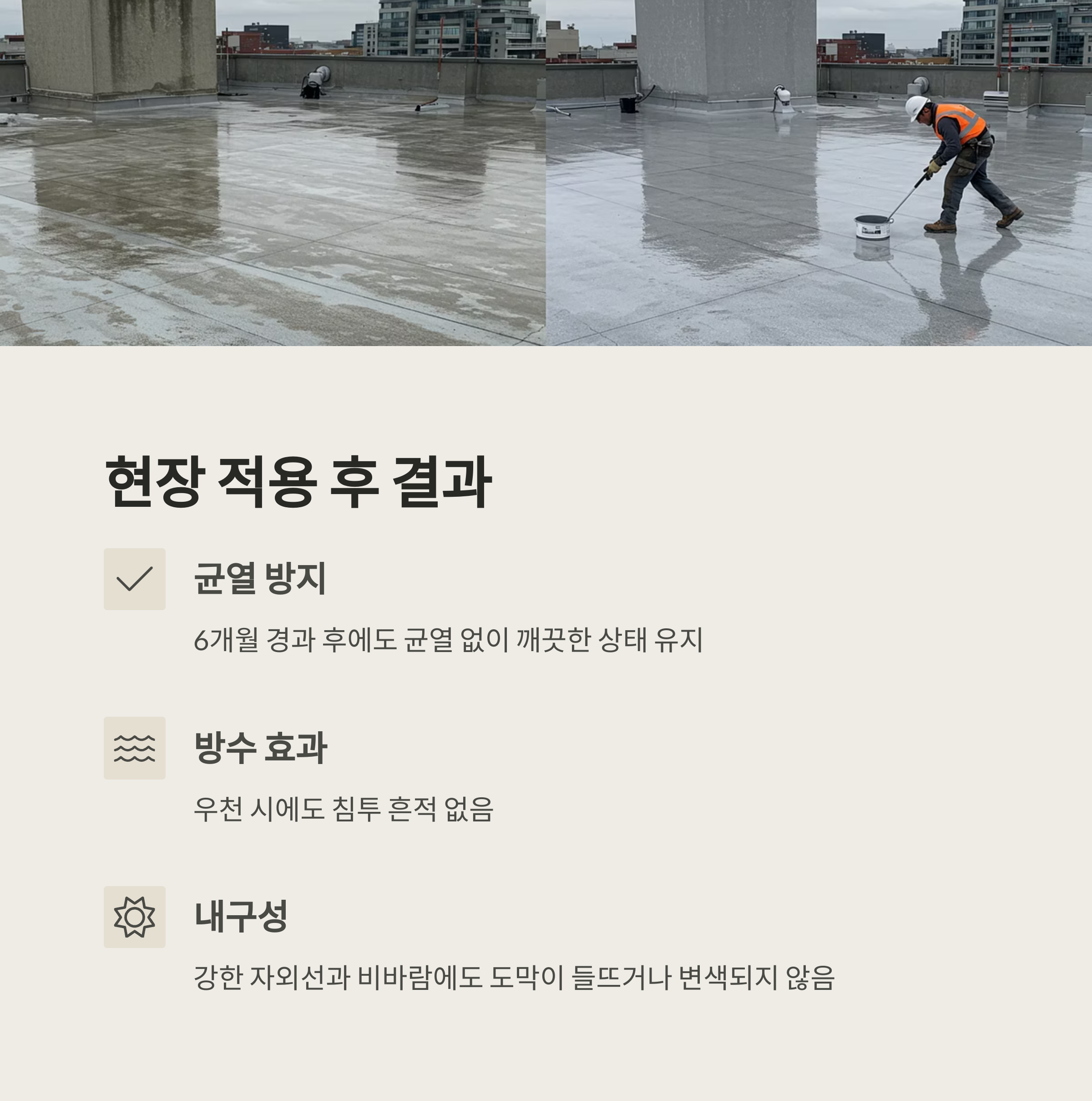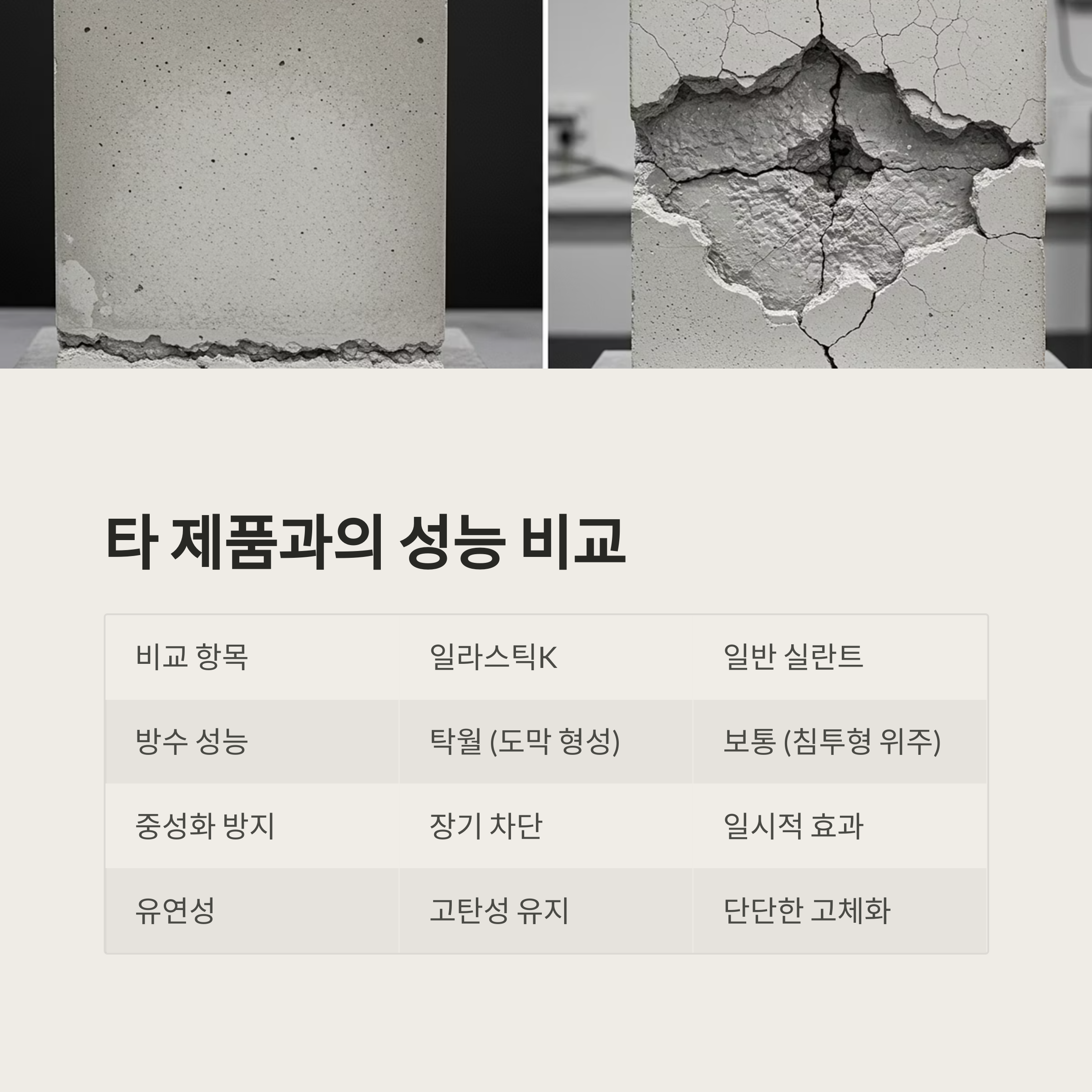 | 방수 성능 | 탁월 (도막 형성) | 보통 (침투형 위주) |