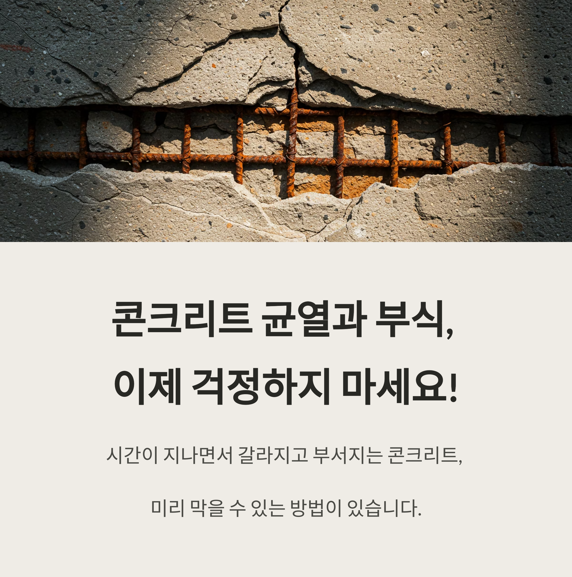 “시간이 지나면 갈라지고 부서지는 콘크리트, 미리 막을 수 있습니다!”