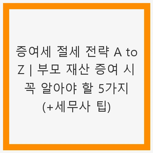 증여세 절세 전략 A to Z|부모 재산 증여 시 꼭 알아야 할 5가지 (+세무사 팁)