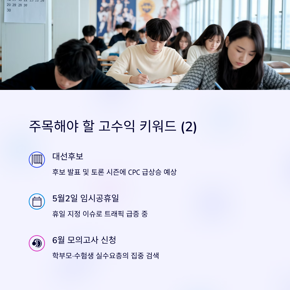 수험생 키워드는 매년 반복됩니다. 특히 “6월 모의고사 접수” 시즌엔 교육 콘텐츠 수요가 폭발해요. 이걸 인강 제휴나 교재 추천으로 연결하면 수익화하기 딱 좋죠.